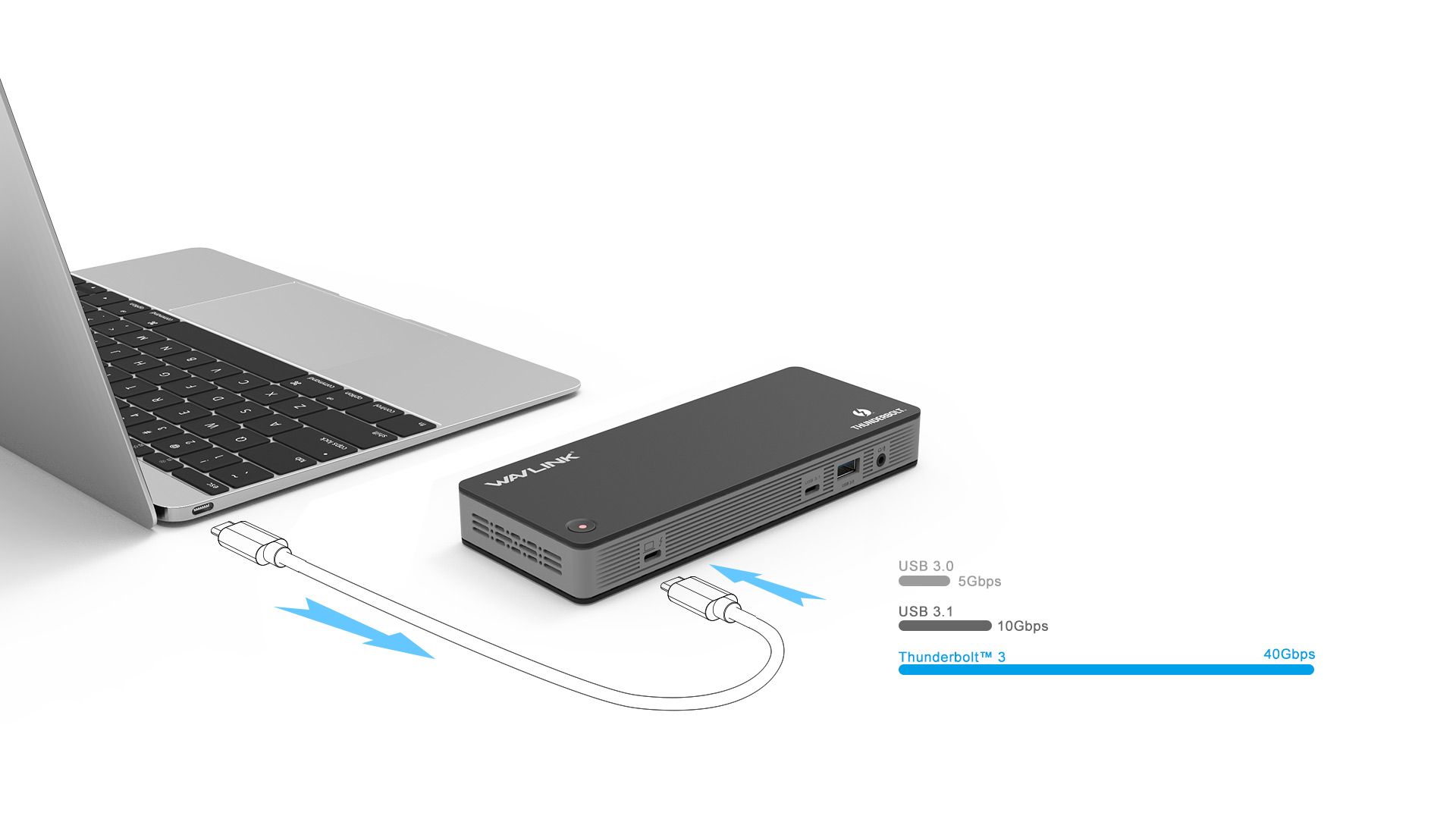 Wavlink Thunderbolt™ 3 dock enables you to connect everything to your computer. You can use this dock to play high-quality images/videos, connect USB-A and USB-C peripherals and charge the laptop at the same time.