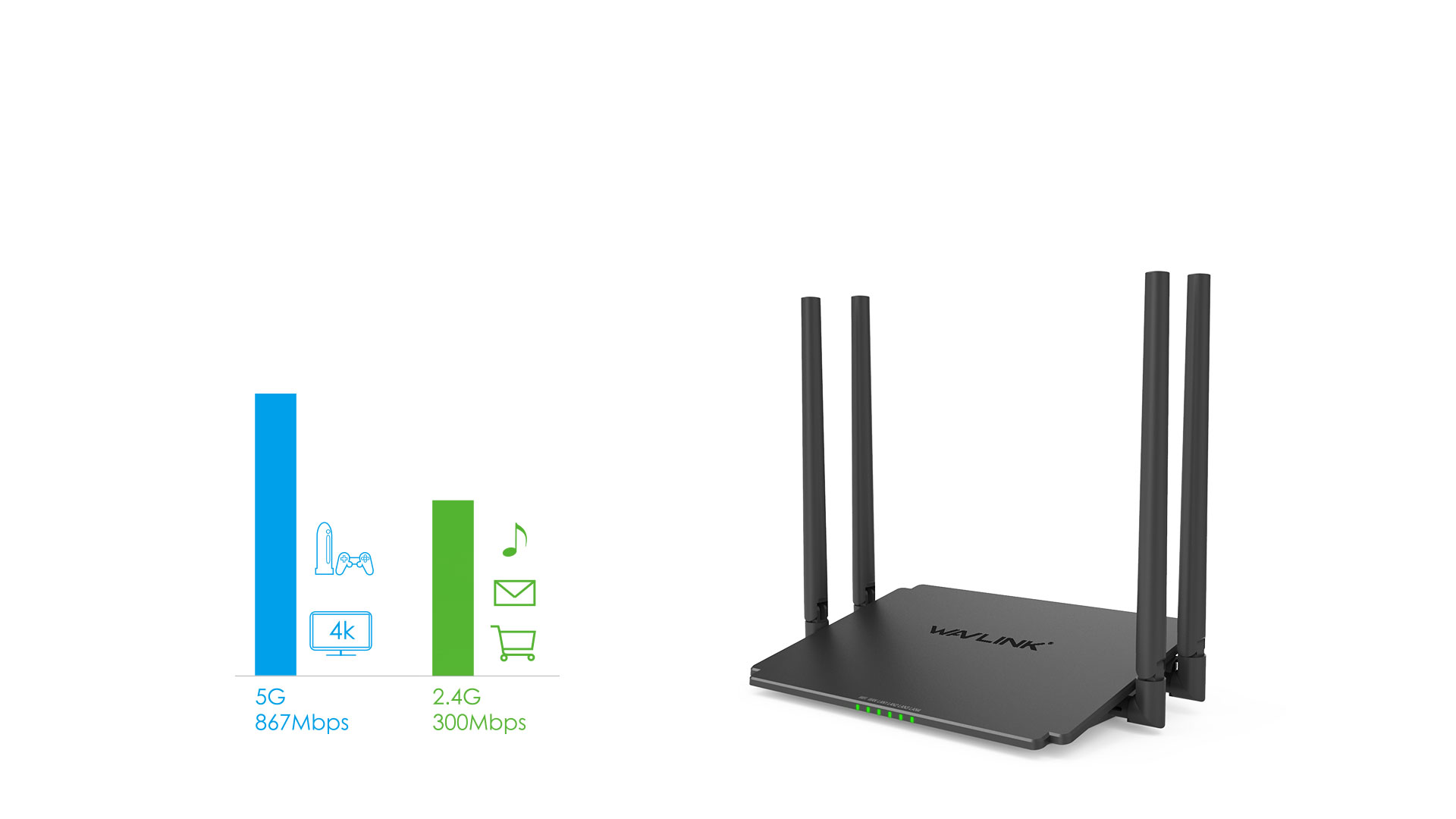 With four 5dBi high-performance antennas, WAVLINK WN532A3 easily outperforms normal routers, providing dramatically expanded wireless coverage and connections that are significantly more reliable.