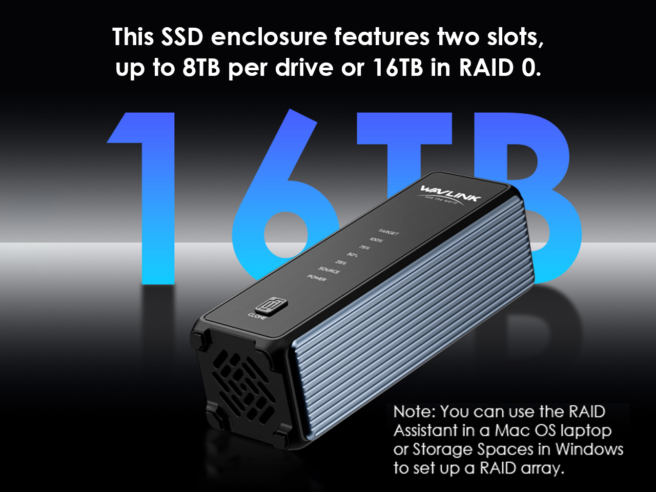 This 2-in-1 NVMe enclosure supports two drives for a flexible and high-speed setup. Achieve a massive 16TB in RAID 0 for intense workloads like video editing, or use the drives independently for organized projects and backups. Experience instant, plug-and-play expansion.