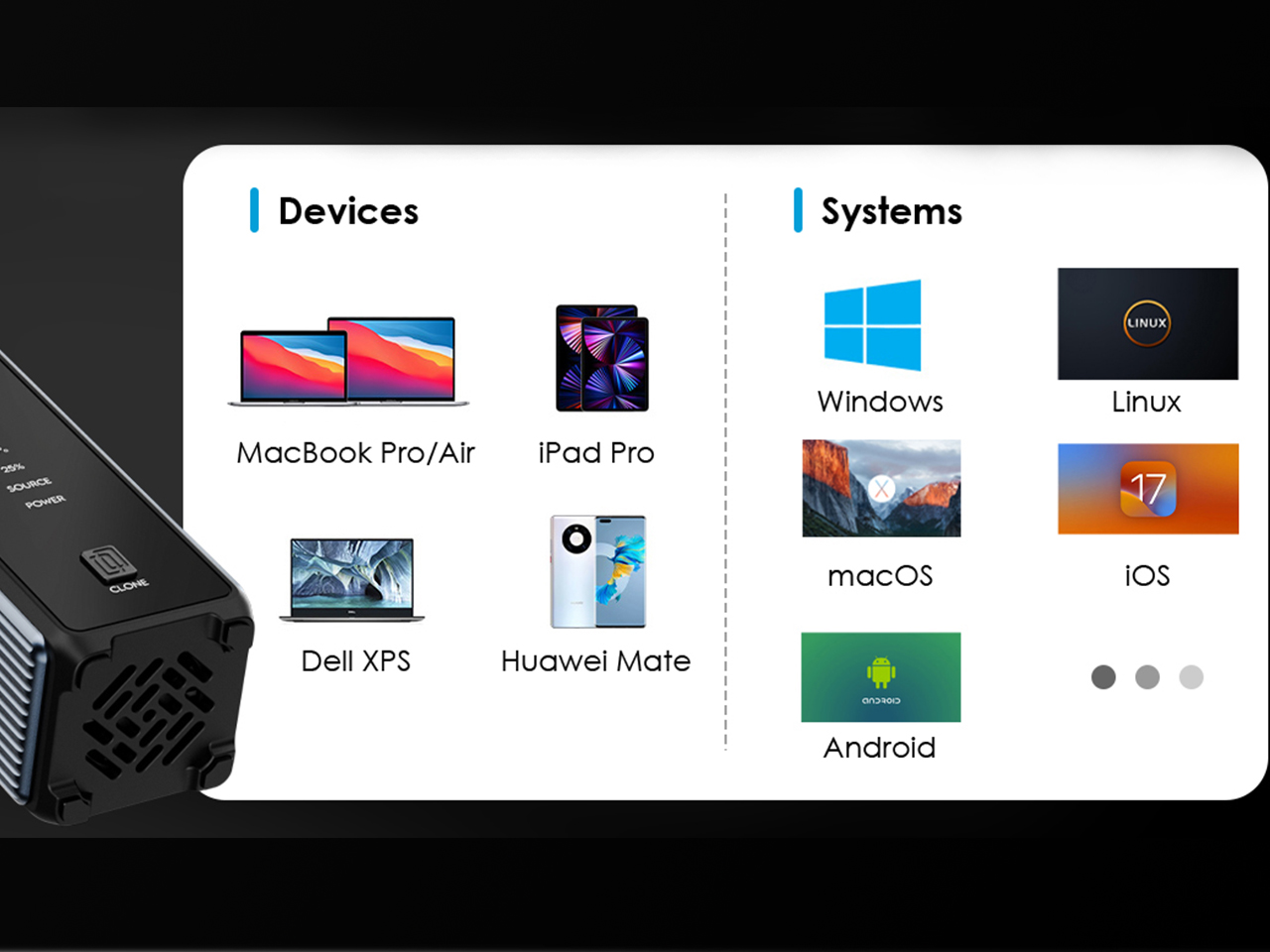 This PCIe NVMe solution works seamlessly across Windows, macOS, Android, and iOS systems. It's also designed to integrate smoothly with popular devices such as MacBook Pro/Air, iPad Pro, and Dell XPS.