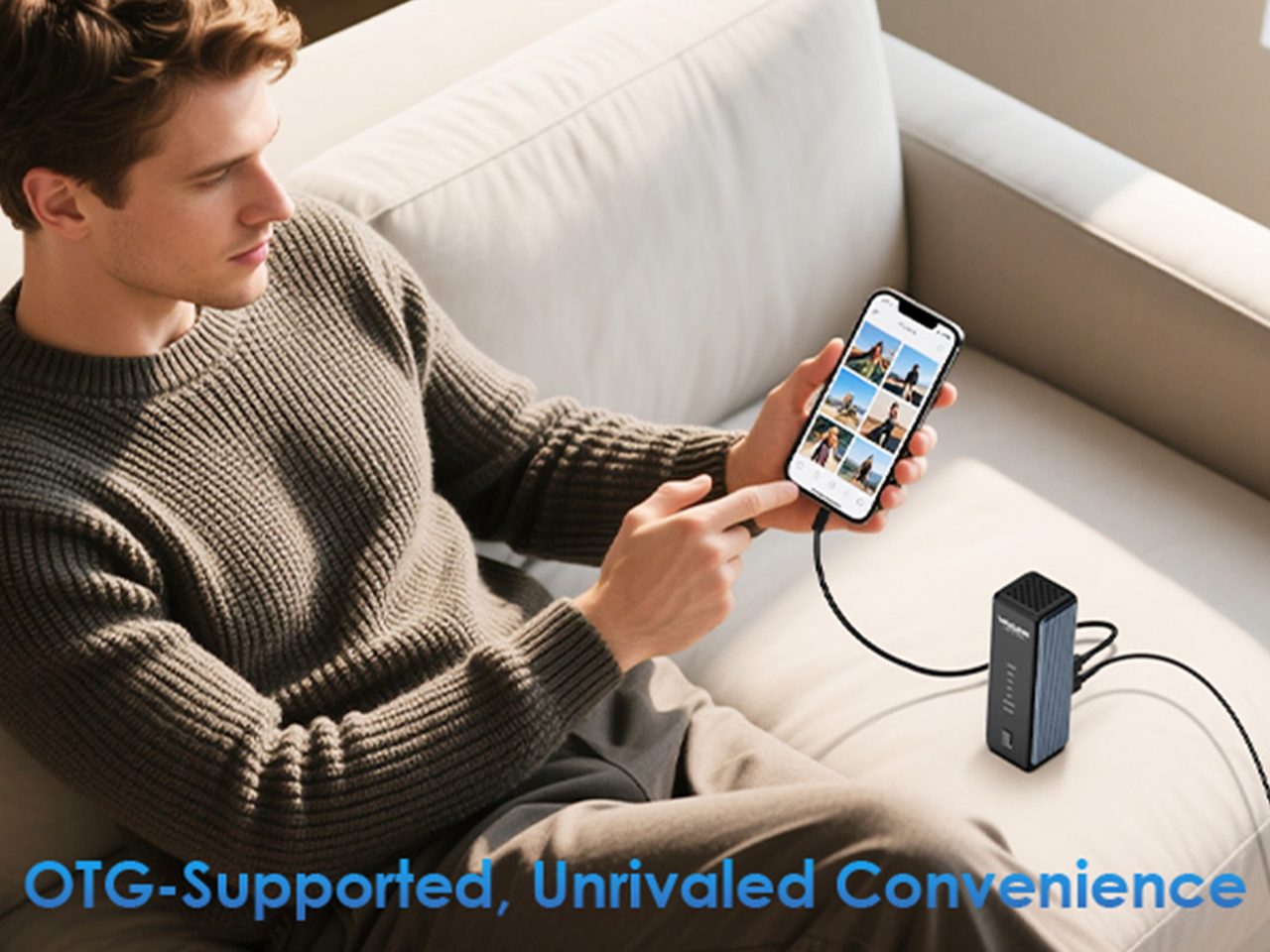 - Supports mobile OTG function, enabling easy reading and writing of data from mobile devices to the hard disk.