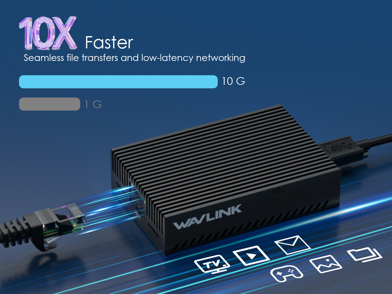 Unlock the full potential of your network with speeds up to 10 times faster than standard Gigabit Ethernet. Experience a new level of responsiveness and efficiency, whether you're working on large projects, streaming 4K content, or managing data-intensive tasks.