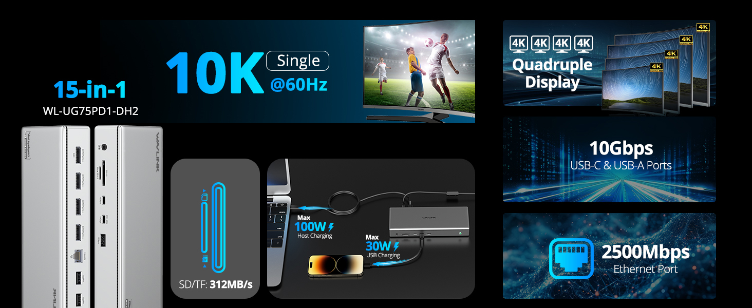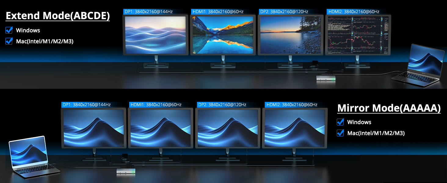 2*DisplayPort&2*HDMI: up to 10K(10240x2880)@60Hz