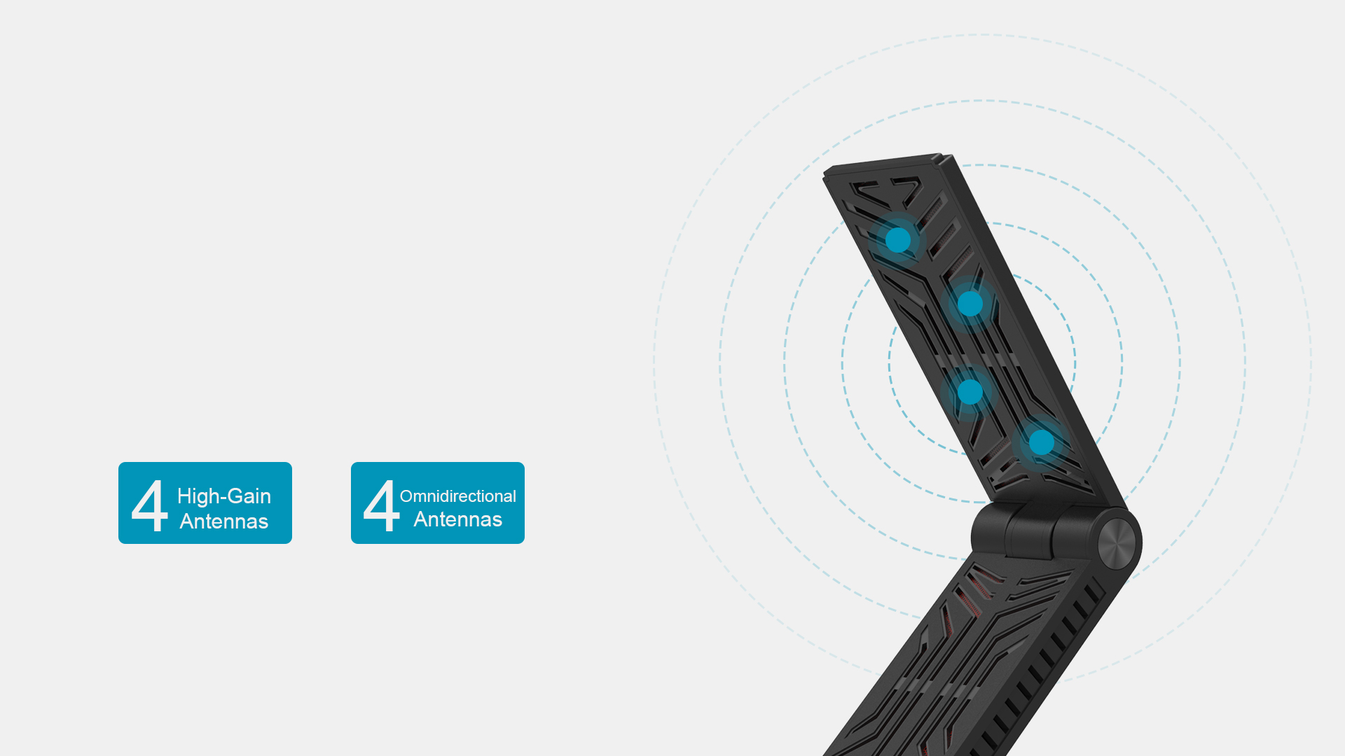 Due to the use of smart antennas, 690A5 largely upgrades the Wi-Fi performance of your computer, especially by covering a wider range and improving the signal strength.