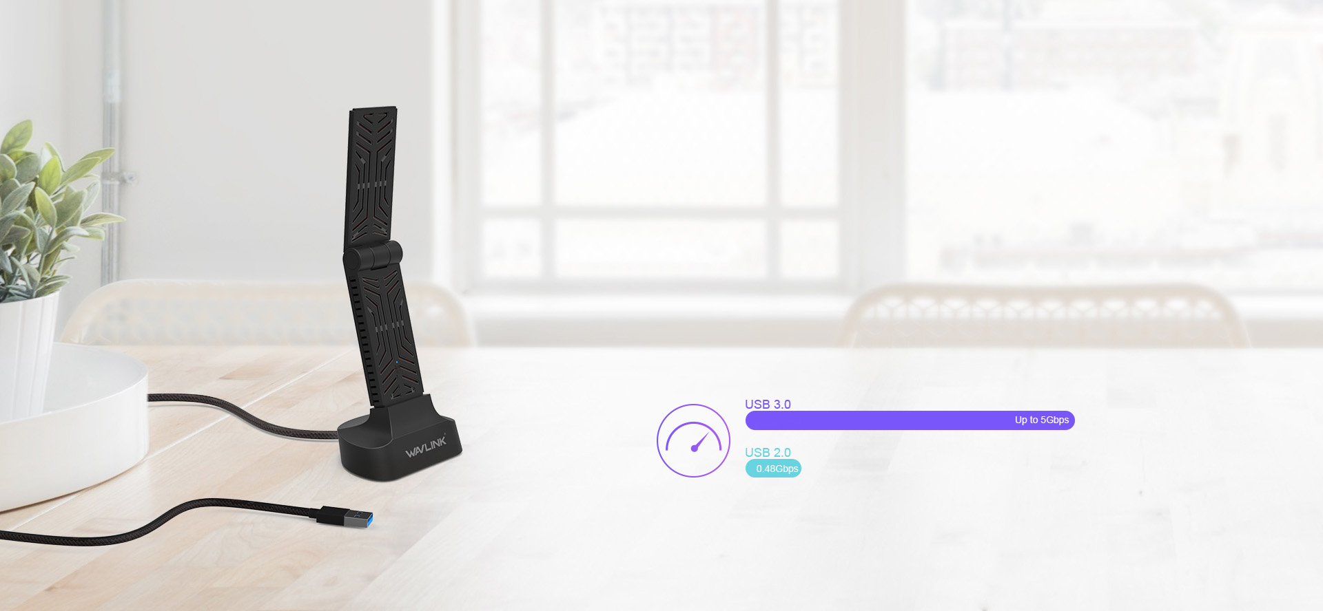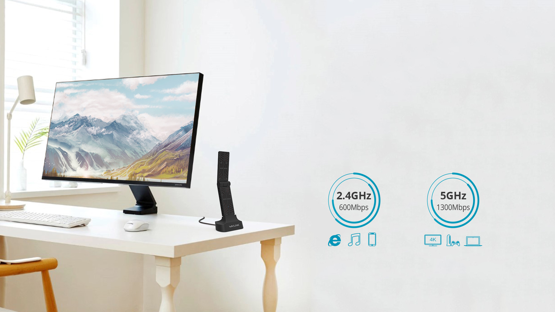 690A5 Dual Band USB3.0 adapter connects your laptop/PC wirelessly to the next generation 802.11ac technique with speeds max. 1900Mbps.