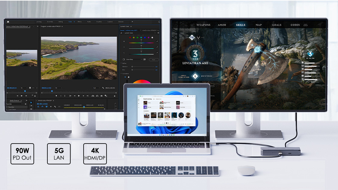 Engineered for the mobile office, this hub accepts up to 100W input to provide a full 90W of charging to your laptop, ensuring it stays powered through intensive tasks and critical work. It combines high-efficiency power management with seamless multi-device integration, making it the smart choice for the relentless professional.