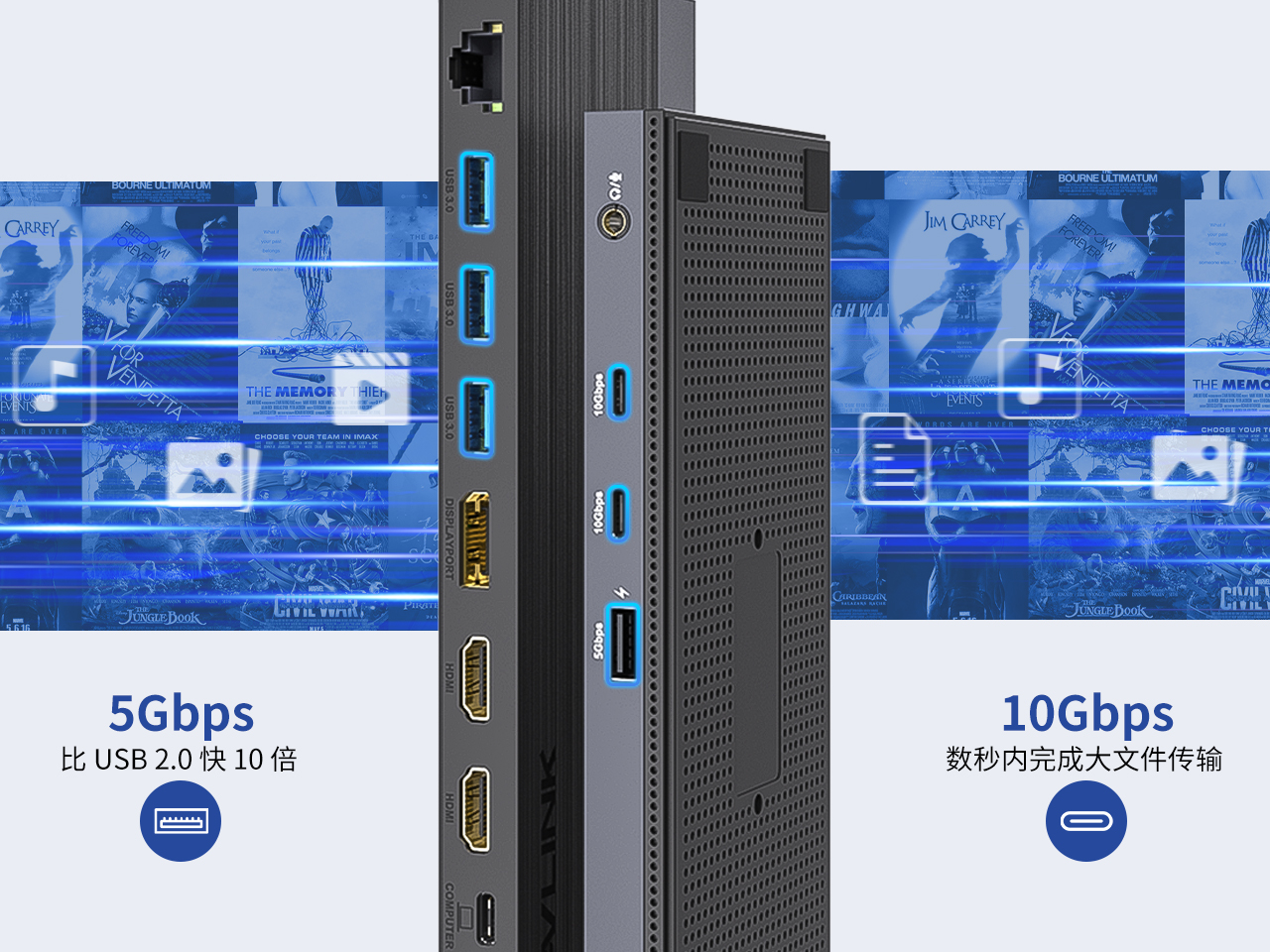 -两个USB-C接口,数据传输速率高达10Gbps,向下兼容USB3.0/2.0。
