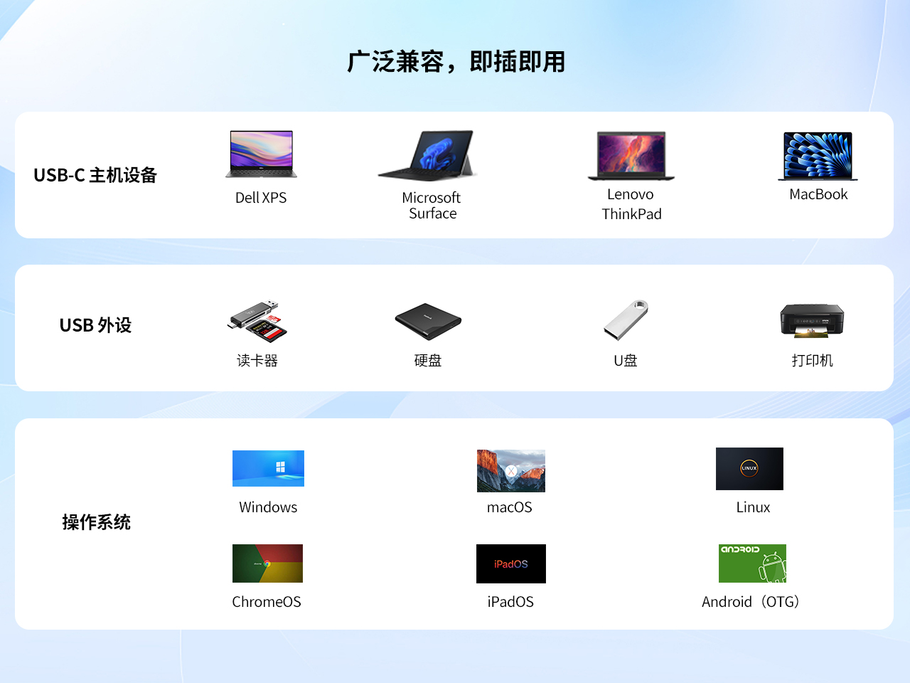 | 电力传输 | 支持最高130W USB供电(PD);可向上游为笔记本电脑提供最高100W充电(含DC电源适配器) |