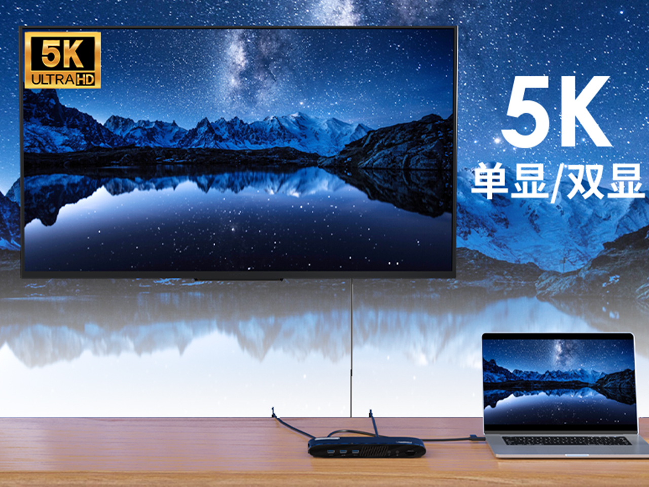实现震撼5K视觉效果,轻松连接单或双显示器。