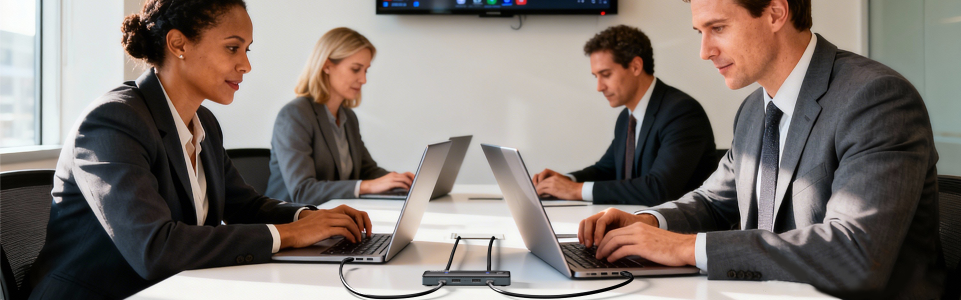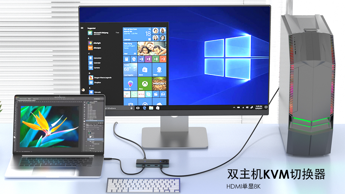 此HDMI KVM交换机可以通过USB-C接口连接两台电脑,共享1个显示器以及3个USB设备,例如键盘、鼠标、打印机等等。