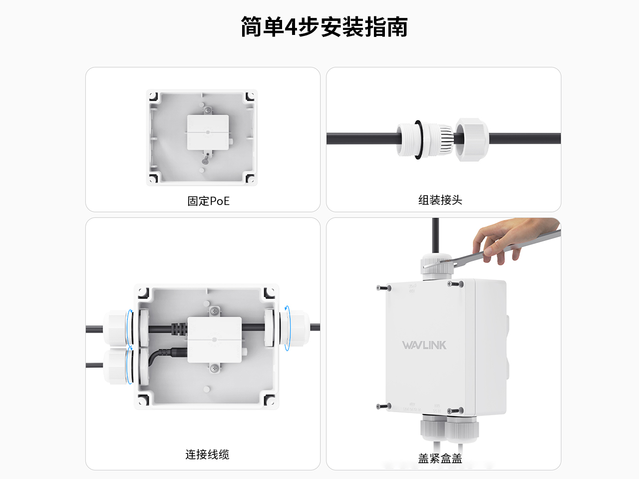 您WAVLINK户外AP的必备搭档。这款为特定目的而打造的全天候保护盒,让您可以安全地将PoE电源适配器移至户外,从而解锁真正的安装灵活性,并确保在任何环境下都能获得专业级的保护。